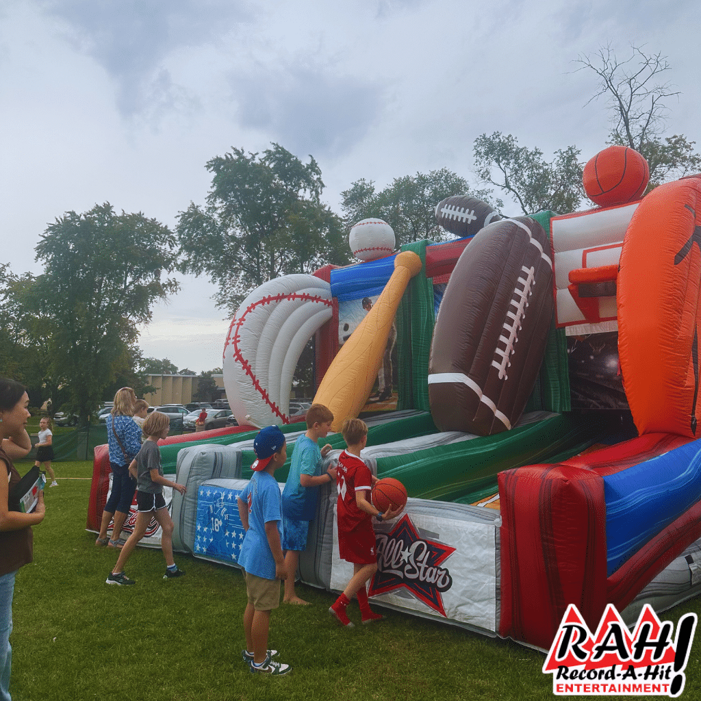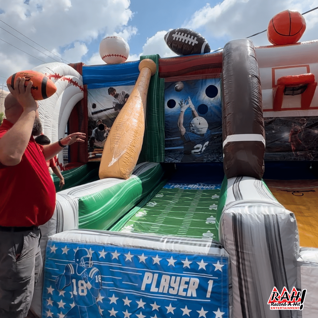 Looking for the ultimate sports-themed inflatable for your next party or event? Our 3-in-1 sports inflatable game is perfect!