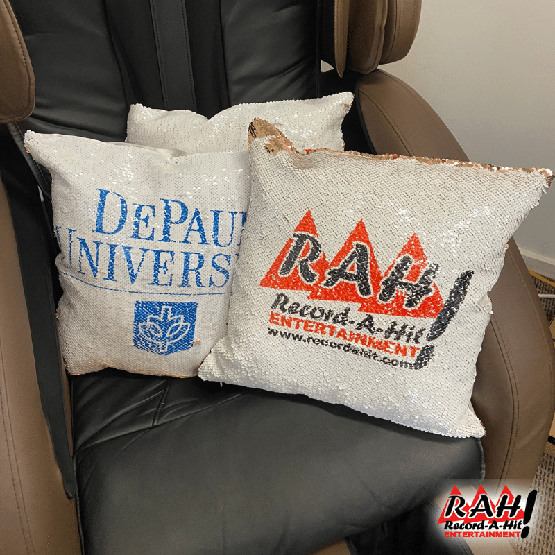 We also have a Drop/Ship or Drop Shipping option available where we work with you in advance on your design, print and make everything in house, then package up and ship the Custom Sequin Pillows and stuffing directly to you. With this option, you will be responsible for setting up the items and having your own attendants (if needed). Shipping/delivery is an additional charge. No Record-A-Hit attendant is included.