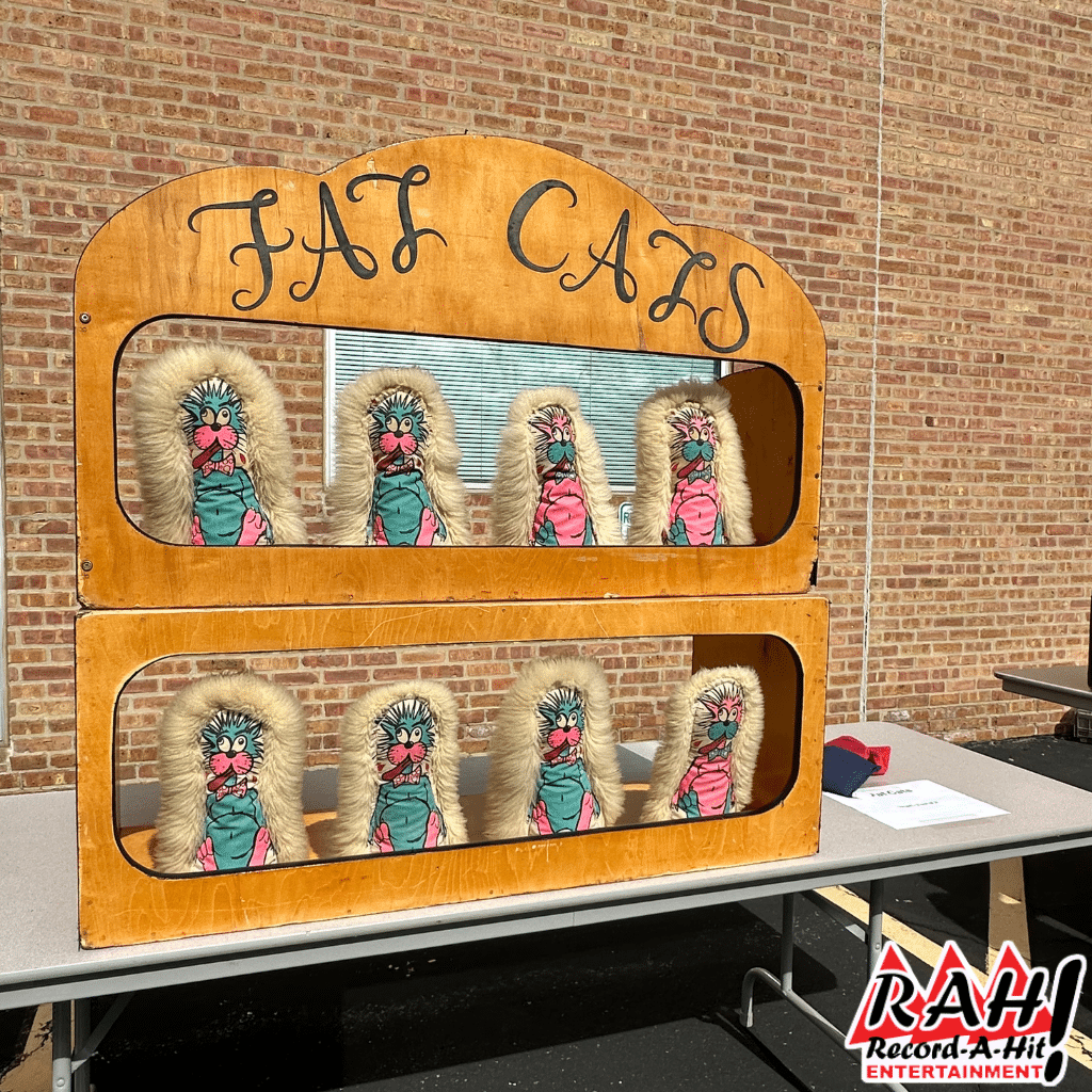The premise of our Fat Cats Carnival Game is simple: a group of plump (but stationary!) cat figures are set up as targets. Players are given a set of beanbags and the objective is to toss them with enough accuracy and force to knock down as many of these tubby tabbies as possible.