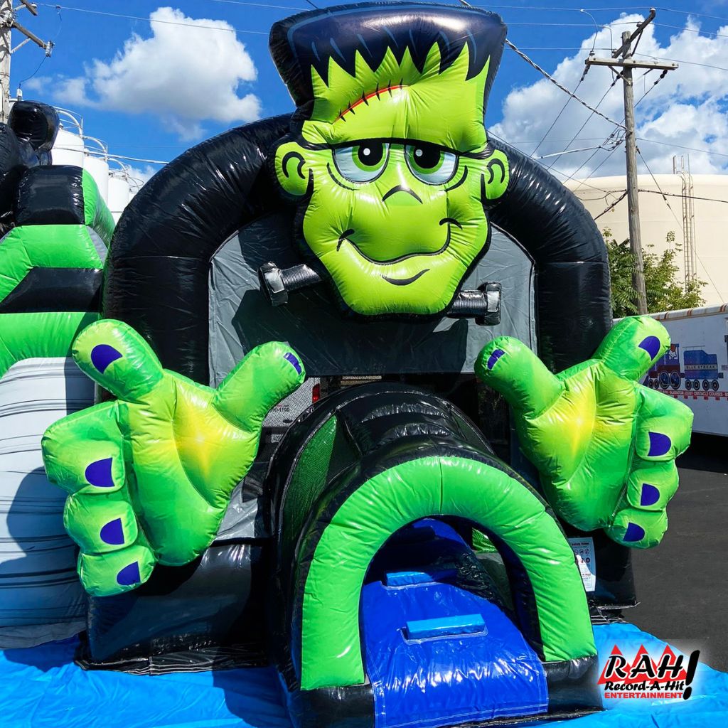 🎃🎉 Don’t Miss Out: Make this Halloween a hauntingly fantastic one with our Inflatable Frankenstein Bounce House and Slide Combination! Limited availability, so secure your monstrous delight today! 👻🕸️