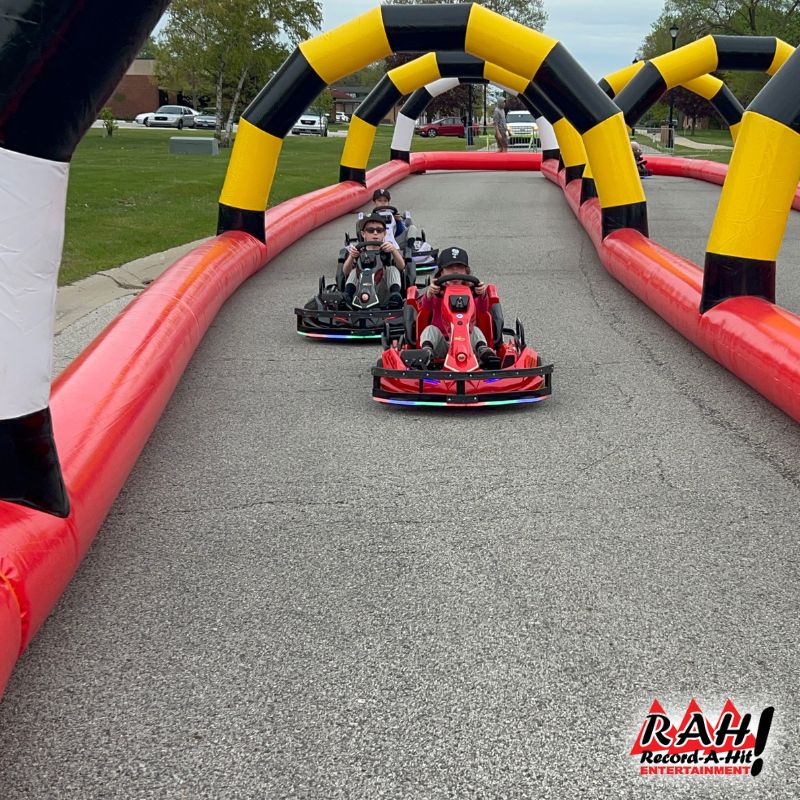 Introducing our inflatable go-kart experience, bringing the exhilarating fun of racing to your doorstep. We set up a safe, exciting, and portable track that works perfectly on any flat parking lot or surface, transforming it into a thrilling raceway for individuals, families, and groups. Up to 4 guests can ride at a time.