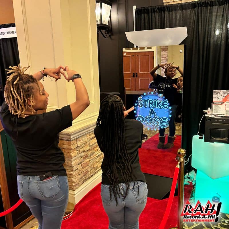 Step into a world of interactive fun with our state-of-the-art Mirror Photo Booth! This isn’t your ordinary photo booth; it’s a magical, full-length mirror that transforms picture-taking into an unforgettable experience. Standing 6 feet tall, our sleek, aluminum-built photo booth features stills, GIFs, group shots, animated overlays, strips, custom photo layouts and horizontal/vertical options.